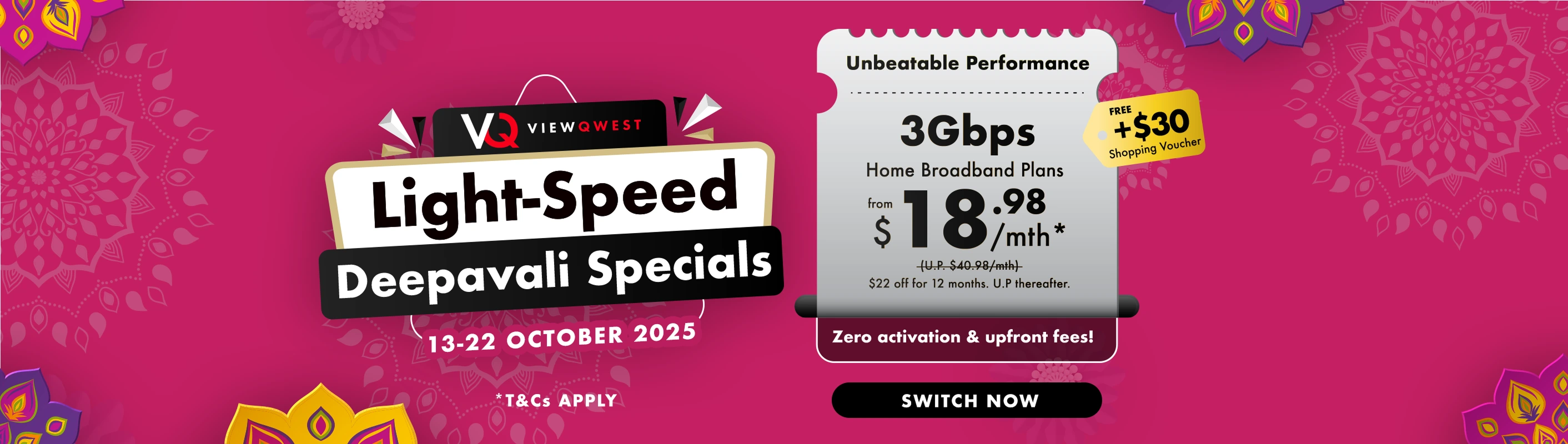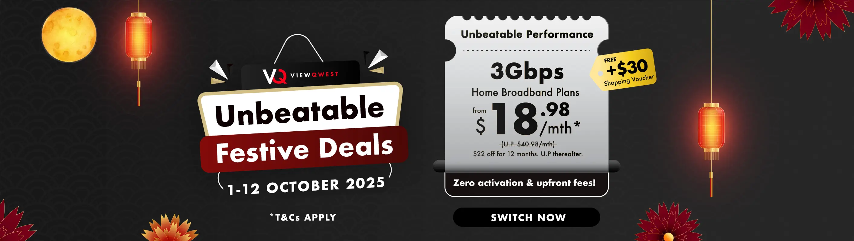 Give your home the best it deserves with the unbeatable value of XGSPON broadband from just $30/month. With ViewQwest X, leverage Singapore’s fastest and most secure broadband, offering speeds up to 10Gbps, paired with next-generation WiFi 7 devices. Enjoy seamless connectivity nationwide and elevate your online experience to new heights!