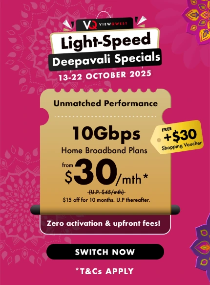 Future-proof your home with XGS-PON fibre broadband—built for today’s needs and tomorrow’s demands. Give your home the best it deserves with the unbeatable value of XGSPON broadband from just $30/month. With ViewQwest X, leverage Singapore’s fastest and most secure broadband, offering speeds up to 10Gbps, paired with next-generation WiFi 7 devices. Enjoy seamless connectivity nationwide and elevate your online experience to new heights!